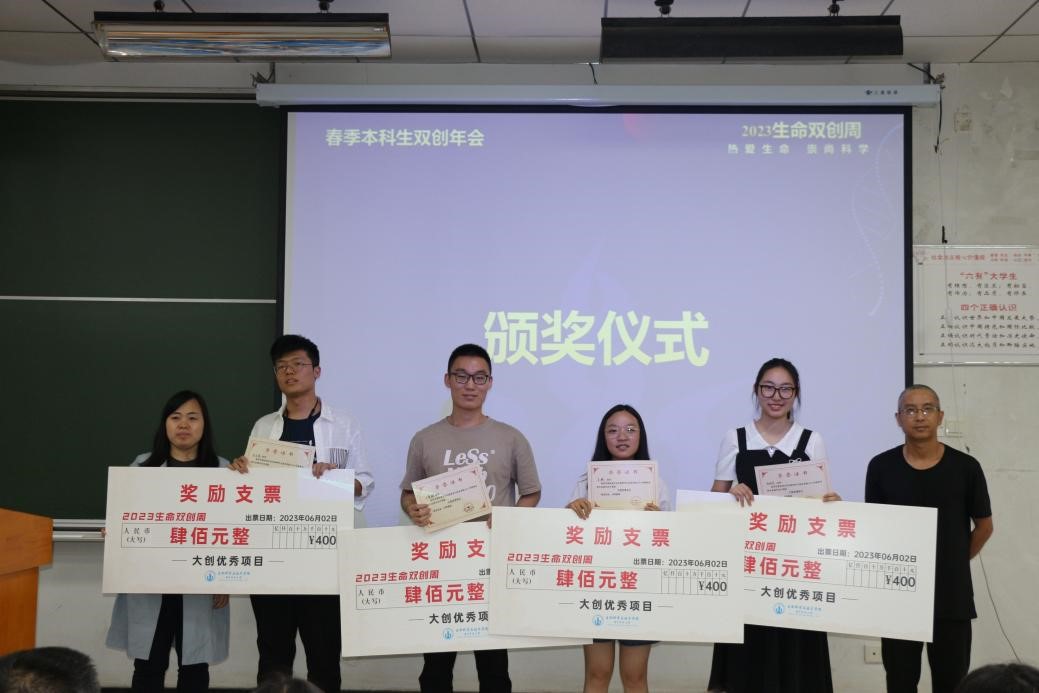 经前期线上投票,陈劼瑜等同学的项目《基于慢性肾小球肾炎的地梢瓜有效成分群探索的实验设计》获得最高票数,荣获“我最喜爱的大创项目”奖。经现场多位老师打分,刘泉等同学的《金线莲茎腐病的发病规律和防治研究》项目获得现场最高评分,荣获“最佳创意大创项目”奖。6个国创项目及2个预备参赛项目荣获“大创优秀项目”奖。